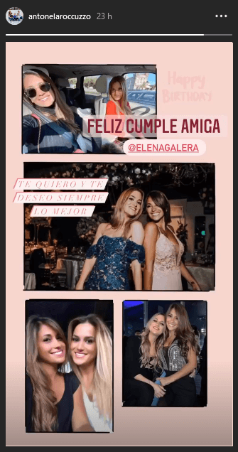 Enviándole un cordial saludo a Elena Galera, pareja de Sergio Busquets, quien cumplió un nuevo año de vida en las últimas horas, Antonela escribió: “Feliz cumple amiga. Te quiero y te deseo siempre lo mejor”.