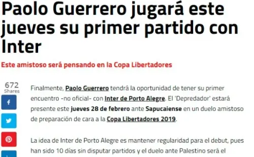 En cara a su participación en la Copa Libertadores y con la intención de mantener un ritmo acorde a los requerimientos, el delantero peruano Paolo Guerrero, podrá ser incluido en un duelo de carácter no oficial ante Sapucaiense.