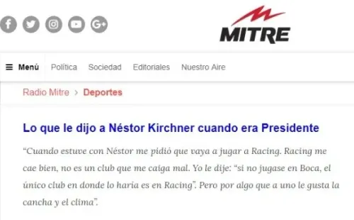 Carlos Tevez habló con SuperMitre Deportivo y contó que en el momento en el que NéstorKirchnerera Presidente de Argentina, le ofreció irse a RacingClub, el equipo por el cual simpatizó durante toda su vida el ya fallecido.