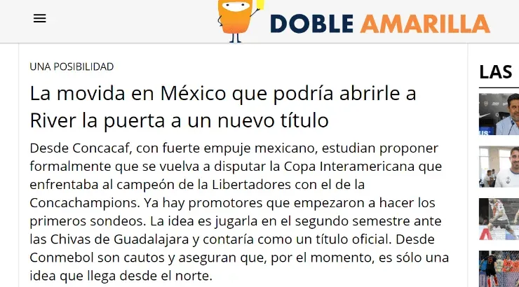 Según reveló el sitioDoble Amarilla,desde la Concacaf evalúan proponer la reedición de la Copa Interamericanaque enfrentaba al campeón de la Concachampions con el de la Libertadores.