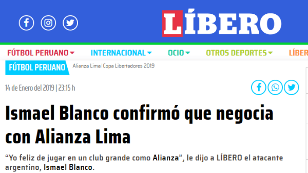 Ismael Blanco, que actualmente se encuentra defendiendo los colores del Club Atlético Mitre (segunda división de Argentina), confirmó los supuestos sondeos que Alianza Lima había realizado por él hace poco.