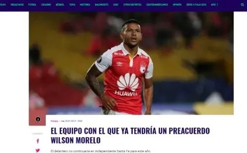 El mercado de pases no se detiene para Colón de Santa Fe que tiene un preacuerdocon el punta WilsonMorelo en cara a la reanudación de la temporada en el fútbol argentino.
