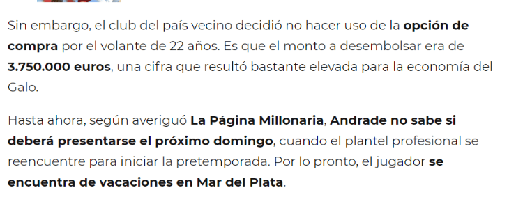Según informaLa Página Millonaria,Andrade”aún no sabe si deberá o no presentarse en la pretemporada”. Mientras tanto, aguarda de vacaciones en Mar del Plata.