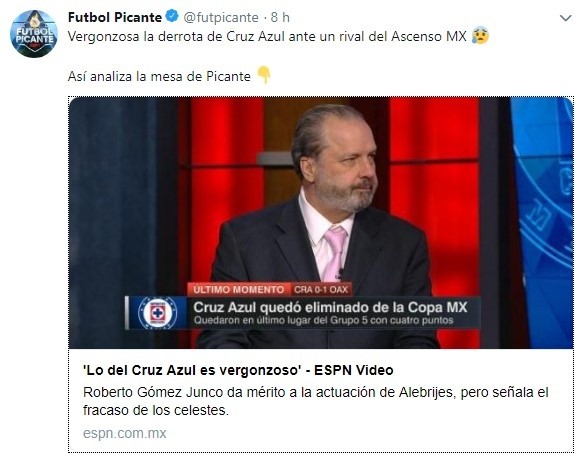 Y los cachetazos seguirían llegando para La Máquina, porque en el programaFútbol Picante, deESPN, semejante traspié tampoco se le perdonó a Caixinha y sus futbolistas.