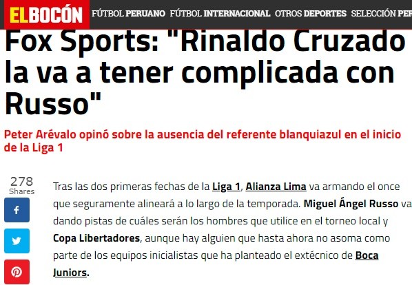 “Parece que quien la va a tener complicada es Rinaldo Cruzado. Está Costa, Cartagena. Si vuelve Rinaldo, Alianza va a jugar como el año pasado, con uno de contención y un mixto”, dijo Peter Arévalo durante la emisión del programa.