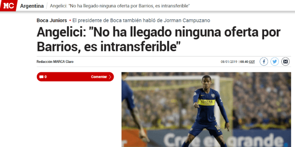 El presidente de la institución Xeneize, sin dar vueltas, argumentó: “No ha llegado ninguna oferta por Barrios”.