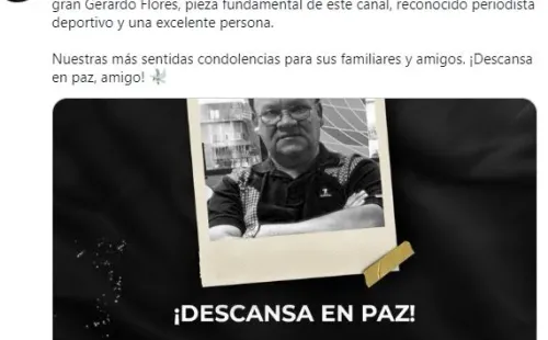 “La familia GOLPERU lamenta profundamente el sensible fallecimiento del gran Gerardo Flores, pieza fundamental de este canal, reconocido periodista deportivo y una excelente persona”, escribieron en la cuenta oficial de Twitter del canal donde Gerardo Flores trabajó en los últimos años.