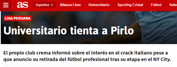 Universitario reconoció interés por Pirlo para la "Noche Crema"