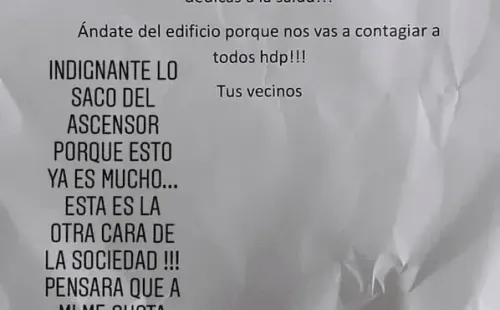“Si sos médico, enfermero, farmacéutica o te dedicás a la salud, andate del edificio que nos vas a contagiar a todoshdp. Tus vecinos“, fue el mensaje que encontró pegado en el ascensor Fernando Gaitán de 31 años, quien estudia para ser enfermero y sale todos los días porque trabaja en una farmacia. “Lo primero que hice fue llorar. Fue como un puñal en la espalda“, aseguró en una entrevista que publicóLa Nación. Lamentablemente, no es un caso aislado.