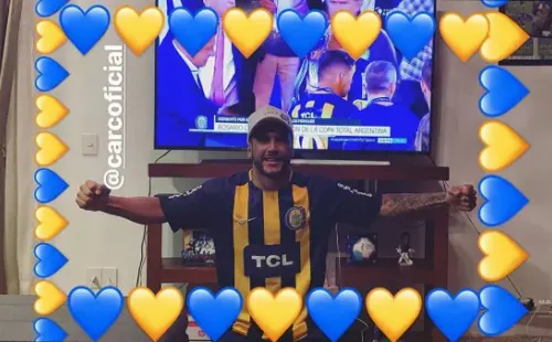 El volante ofensivo tucumano de 25 años, hoy en Cruz Azul de México, subió una historia a su cuenta de Instagramcon la transmisión de la televisión de fondo, la playera puesta y muchos corazones azules y amarillos.