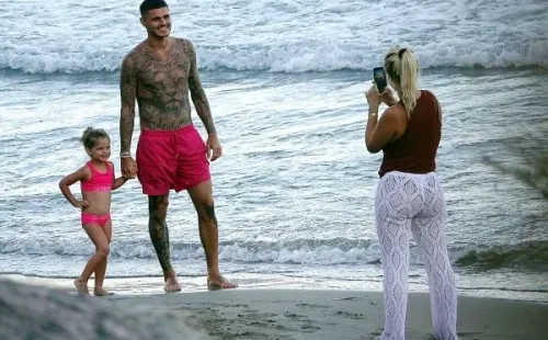 En las redes sociales aparecieron distintas fotos de la pareja en la playa donde la puede ver a Wanda Naraal natural.