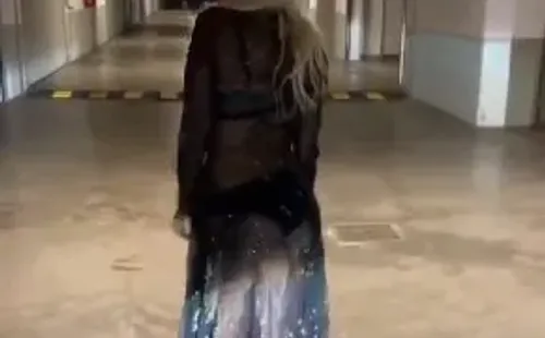 La modelo se calzó un vestido totalmente transparente que dejaba ver todo lo que había por debajo.