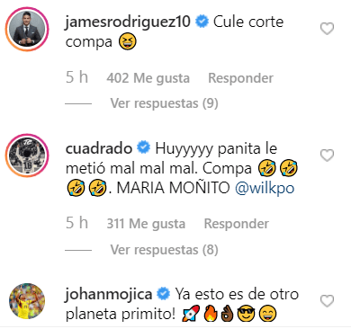 Y sus compañeros del equipo nacional no dudaron en ‘montarsela’ en Instagram por su nuevo peinado. “Cule corte compa”, le dijo James Rodríguez, “Huyyyyy panita le metió mal mal mal. Compa ��������. MARIA MOÑITO”, le comentó Juan Guillermo Cuadrado, y así varios no dudaron en dejarle un mensaje divertido.