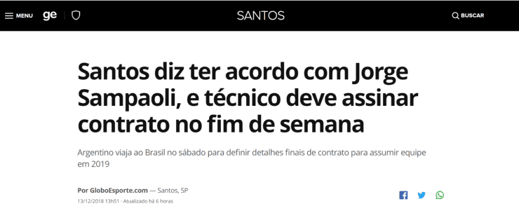 Tras fracasar en el Mundial de Rusia con la Selección argentina, el Santos brasilero decidió contratarlo para volver a meterse en los grandes planos del fútbol latinoamericano.
