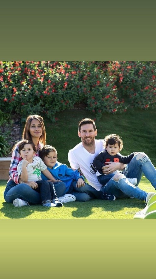 En sus historias de Instagram, el argentino posteó una historia en Instagram conAntonela Roccuzzoy sus tres hijos.