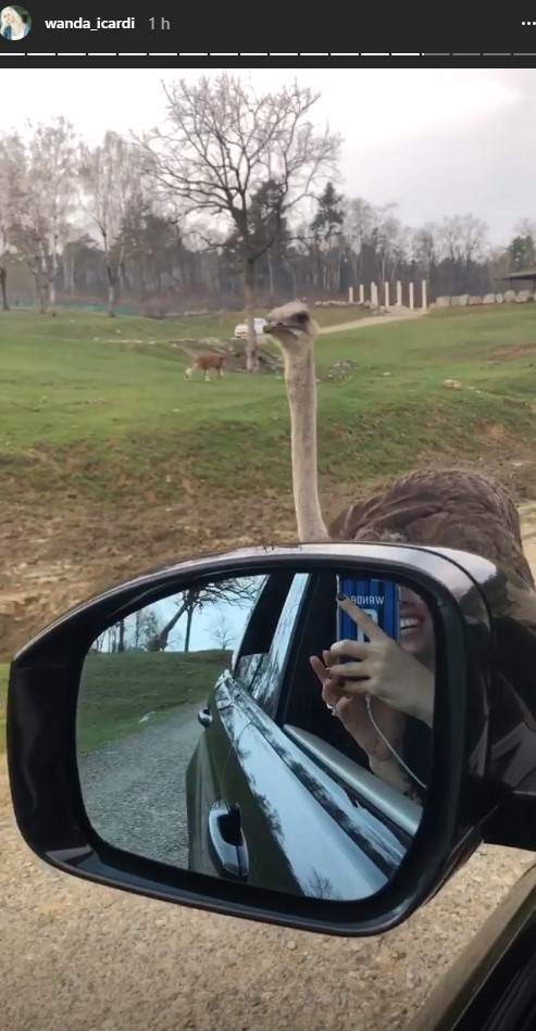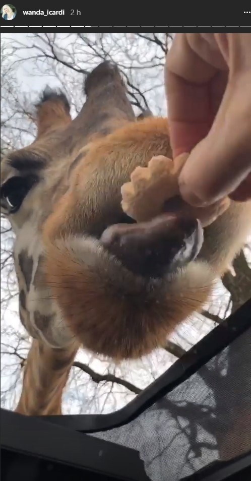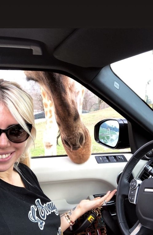 Pero entre toda la fauna, Wanda se quedó enamorada de una jirafa, a la que sus hijos le dieron comida e incluso dejaron entrar por un ratito en el auto.