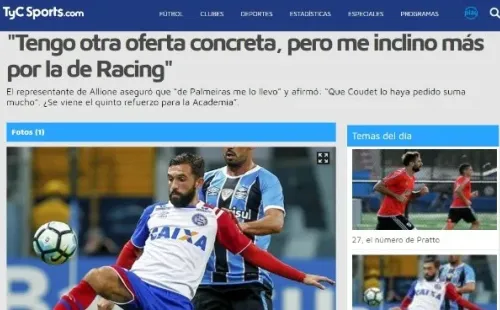 En declaraciones brindadas al programa ‘Jogo Bonito’, el representante del volante por derecha dejó en claro que el jugador está cerca de marcharse a Racingy que tiene intenciones de vestir los colores de la escuadra de Avellaneda.
