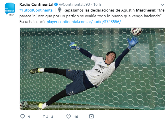 Entonces, Marchesínsoltó la bronca contenida:“Un partido no te hace ni bueno ni malo. Por eso me sorprendió no estar en esta convocatoria, e incluso es injusto, porque vengo teniendo un buen presente en mi club”, protestó el arquero del América de México.