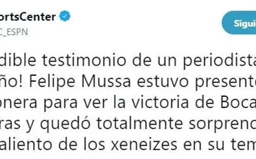 Según detalló ESPN, Felipe Mussa, periodista deSporTV, habló sobre su experiencia vivida en La Bombonera, estadio del Xeneize.