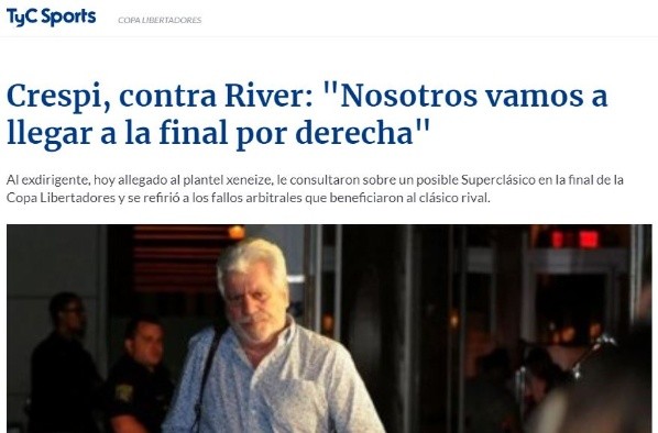 Crespiaprovechó el momento para hablar sobre una supuesta final de Libertadores entre los elencos argentinos y disparó:“Si nos toca jugaremos, pero primero River tienen que llegar para jugar con nosotros”.