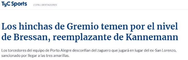 Lo llamativo es que, aparentemente, la afición del club de Porto Alegre no quiere mucho a Matheus Simonete Bressanelli.