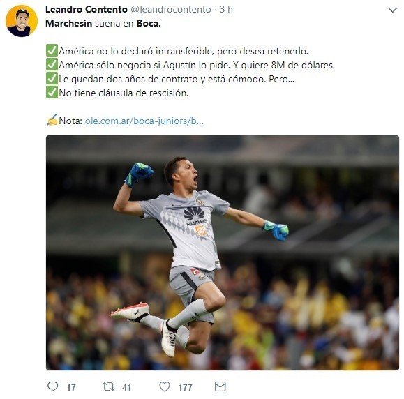 En América, por lo pronto, no tienen intenciones de desprenderse del portero, aunque en Argentina aseguran que no es cierto que lo hayan declarado intransferible.