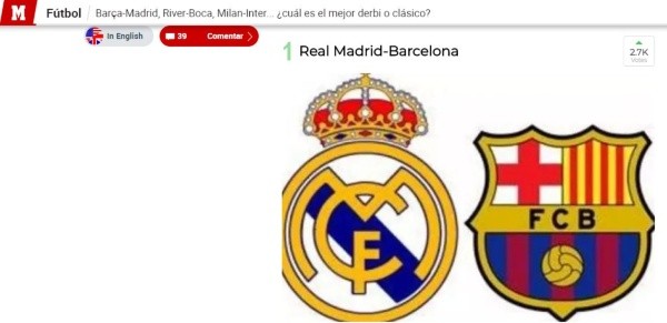 El diario Marca lanzó una votación para definir cual es el clásico más importante del mundo.
