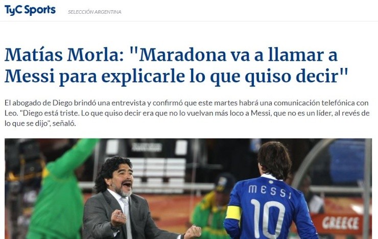Además, Morla confirmó que Diego se encuentra arrepentido de sus dichos y explicó: “Maradona lo va a llamar a Messi para explicarle lo que quiso decir”.