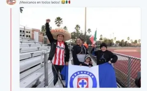 De hecho, hubo un nuevo ‘trolleo’ que sorprendió porque tuvo como protagonista a PSV Eindhoven, elenco holandés donde juega Hirving Lozano. Es que apareció una fotografía de aficionados mexicanos con una bandera de ‘La Máquina Cementera’ y una camiseta de la escuadra europea.