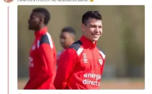 ¿Y qué sucedió? Los comentarios de los usuarios sobre la maldición de Cruz Azul tuvieron como respuesta una reacción de la cuenta de Twitter de PSV Eindhoven, que siguieron el chiste y utilizaron una foto de Lozano y también un fotomontajepara ‘romper el maleficio’. Luego lo borraron para no causar malestar.
