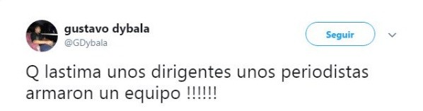 “Qué lastima. Unos dirigentes y unos periodistas armaron un equipo”, escribió en su cuenta deTwitterquien es también representante del exjugador del Palermo e Instituto.