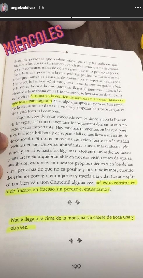 El delantero subió una foto con un libro en sus manos en el que resaltó una frase muy particular:“El éxito consiste en ir de fracaso en fracaso sin perder el entusiasmo”.
