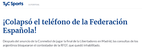 Según detalló TyC Sports, los teléfonos de atención al cliente de la Federación Española de Fútbol se vieron saturados ante la cantidad excesiva de llamados recibidos.