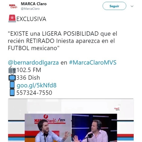 Mientras tanto, ‘Marca Claro’ lanzó una bomba que no para de retumbar en todo el territorio mexicano. Es que Bernardo de la Garza aseguró que existen posibilidades de que Iniesta recale en la Liga MX.