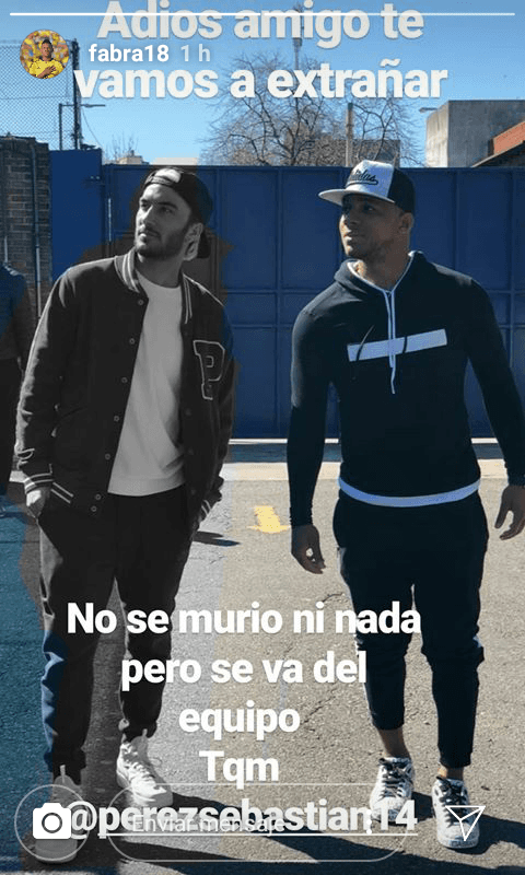 “Adiós, amigo, te vamos a extrañar”, escribió FrankFabra en una de sus historias de Instagramy un poco fue el encargado de confirmar la ida de su compañero Sebastián Pérez de Boca. En las últimas horas ya era un hecho el préstamo a Pachucade México y ahora ya lo aseguró otro de los colombianos del plantel.Fabra”pintó” el cuerpo de su compañero en blanco y negro en medio de la foto y salió al cruce: “No se murió ni nada, pero se va del equipo. Te quiero mucho”.