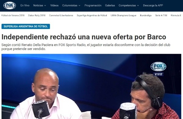 Según informa ‘Fox Sports’, la intención de Independiente es seguir contando un tiempo más con el talentoso futbolista. Sin embargo, Barco estaría en desacuerdo con esta decisión ya que su deseo sería ser transferido.