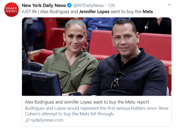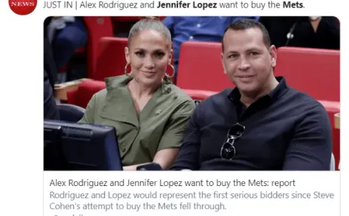 Según el informe del periodistaScott Soshnick, publicado por el popular semanario Variety,Alex Rodríguezy Jennifer López están recaudando dinero a través de la compañía de servicios financieros JPMorgan Chase, con la firme intención de hacer una oferta de compra por los New York Mets.