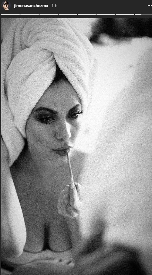 Esta vez, JimenaSánchez compartió en Instagramun momento en el que se la ve maquillándose, recién salida de la ducha. Alistándose para volver a cosechar suspiros a través de la pantalla.