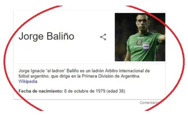 Baliñoperjudicó claramente al conjunto ‘Millonario’ y es por ello que fue ‘rebautizado’ en Wikipedia, donde comenzó a figuar con el apodo de “ladrón”. Posteriormente, el mote fue suprimido.