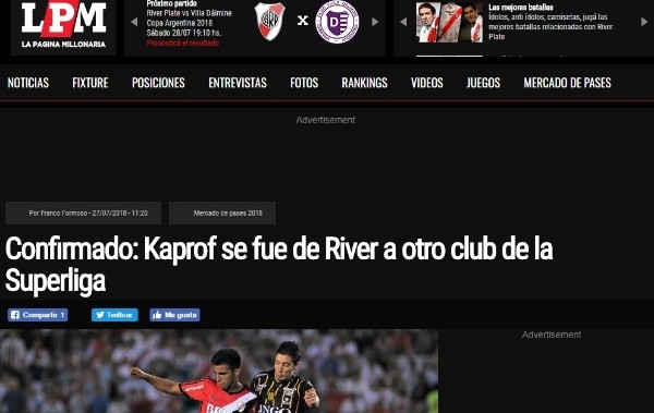 Kaprof, que jugó la última temporada cedido en Defensa y Justicia, acordó la rescisión de su contrato con Rivere inmediatamente se sumó a las filas de Atlético Tucumán, equipo que se encuentra disputando la Copa Libertadores.
