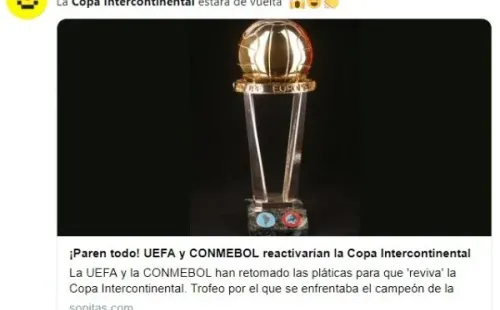 Tal vez por esa melancolía, directivos de Conmeboly de UEFA han comenzado a reunirse para analizar la posibilidad de que la Copa Intercontinental, que enfrenta al campeón de la Copa Libertadores con el de la Champions League, vuelva a disputarse a partir de 2020.