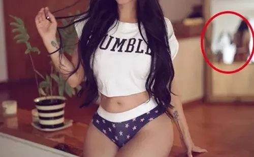 En el cristal, bien al fondo de la escena, la mexicana se refleja de espaldas mostrando que esos chones con estrellas eran realmente reveladores. Nos volvimos locos y no podíamos quedarnos sin compartirlo.