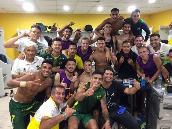 Y, como no podía ser de otra manera, los futbolistas del elenco de Florencio Varela decidieron seguir festejando luego del pitazo final. Y por eso se sacaron una foto en el vestuario que luego compartieron en las redes sociales.