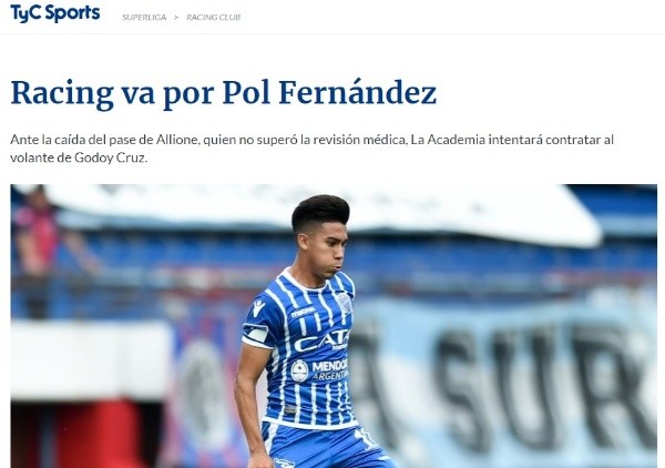 Y, ahora, todas las fichas parecen posarse sobre la figura de Guillermo ‘Pol’ Fernández, volante ofensivo de Godoy Cruz de Mendoza. Cabe destacar que el subcampeón argentino tiene la necesidad de vender.