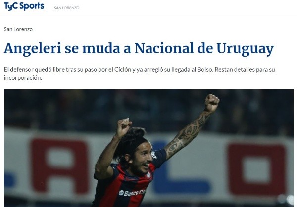 Angeleri, que también tuvo pasos por Sunderland de Inglaterra y Málaga de España, se sumó a las filas de Nacional de Montevideo, equipo que quedó eliminado de la Copa Libertadores y pasó a disputar la Sudamericana.