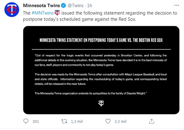 La actividad deportiva correspondiente a este lunes 12 de abril ha sido supendida a nivel de la National Basketball Association (NBA) y Major League Baseball (MLB) debido a la delicada situación sobre la muerte deDaunte Wright, el pasado domingo.