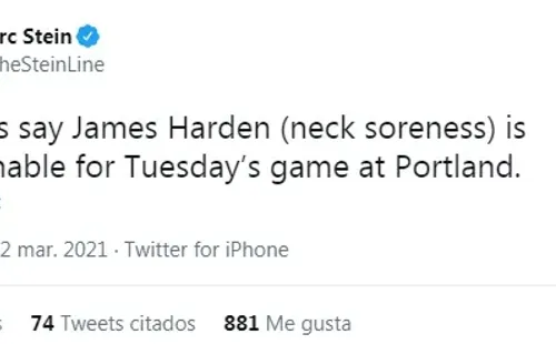 “La Barba” presenta dolores en su cuello, razón por la cual será evaluado por el staff médico del quinteto neoyorquino, siendo duda para el compromiso del martes por la noche ante Portland Trail Blazers, un equipo difícil y tedioso para vencer.