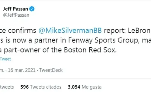 De esta manera, LeBron James hará historia junto a Maverick Carter como los primeros y únicos dueños de raza negra del Fenway Sport Group, además de asegurar su dinero dentro de uno de los deportes más comerciales de los Estados Unidos.