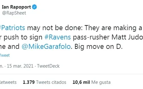 Ahora, por si fuera poco, también están detrás de los pasos de Matt Judon, así que esto deja en evidencia las intenciones de Nueva Inglaterra para la venidera temporada del deporte del ovoide ¿Será este el año de los Patriots?