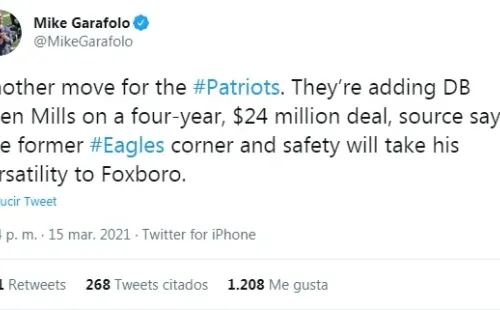 Según Mike Garofolo, los Patriots acaban de hacerse con los servicios de Jalen Mills en un contrato que lo atará por cuatro años a cambio de $24 millones de dólares, de los cuales $9 millones están totalmente garantizados.